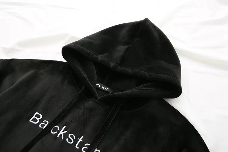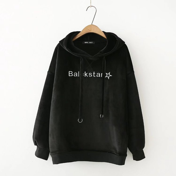 秋冬新款韓范寬松雙面絨絲絨刺繡五角星字母連帽加絨衛衣女S6494